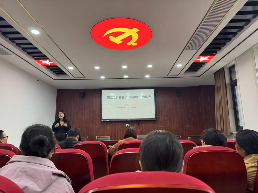 作为今年国家社科基金立项者,区域经济学教研室副教授王杰带来“接地气”的经验分享,从实战角度拆解成功关键。她结合自身国家社科项目申报经历,从“选题、论证、细节、坚持”四个维度,详细分享了国家社科基金项目的申报要点,为计划参与2026年国家社科基金项目申报的老师提供了宝贵经验借鉴。